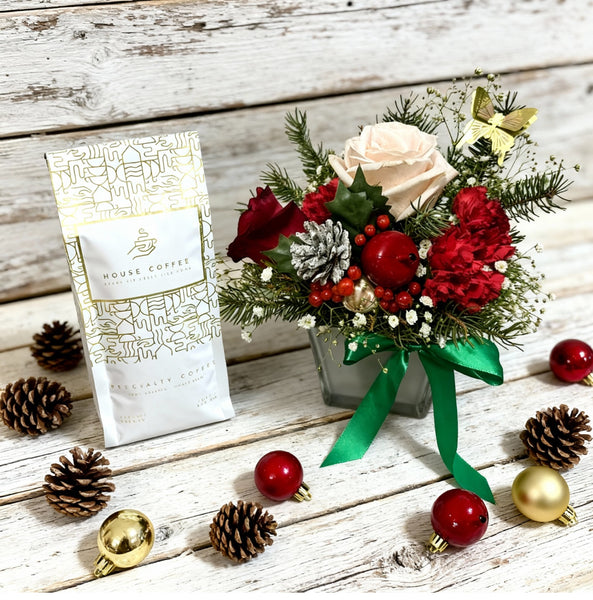 A real treat for someone that values the beauty of fresh flowers and excellent coffee. Sweet treat for the season. Add your message to the flowers and make someone feel special.